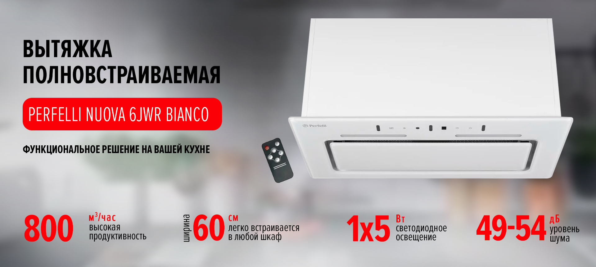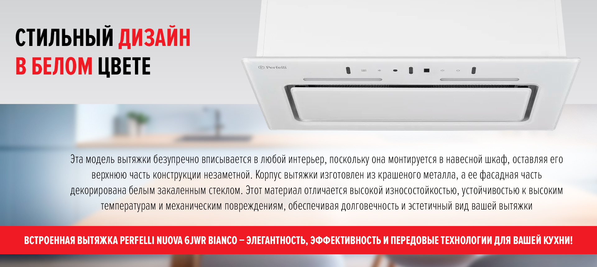 Встроенная вытяжка PERFELLI NUOVA 6JWR BIANCO — элегантность, эффективность и передовые технологии для вашей кухни!