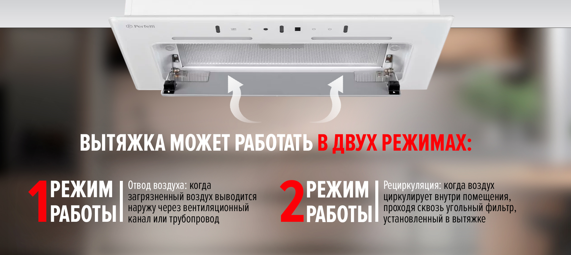 Вытяжка может работать в двух режимах:
