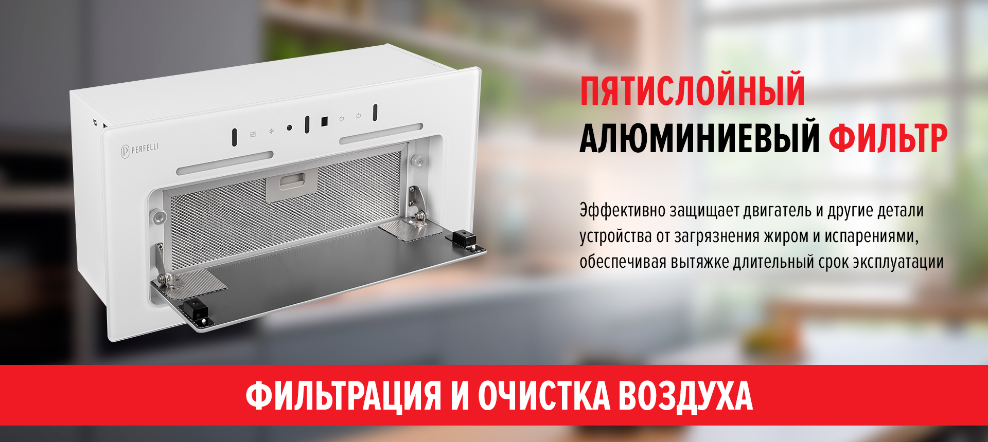 - Трехслойный алюминиевый фильтр, который надежно удерживает копоть и испарения.