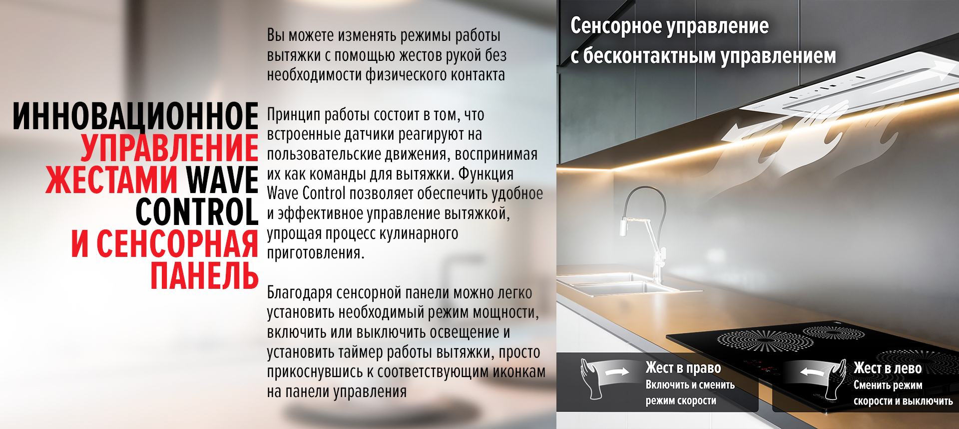 - Современная сенсорная панель с технологией управления жестами (Wave Control).