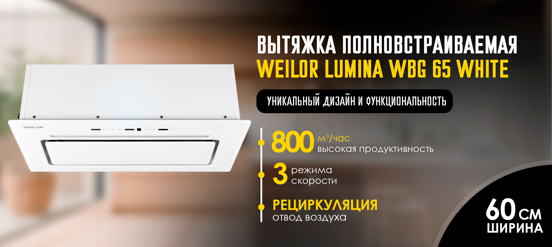 Встроенная вытяжка WEILOR LUMINA WBG 65 WHITE — элегантность, эффективность и передовые технологии для вашей кухни!