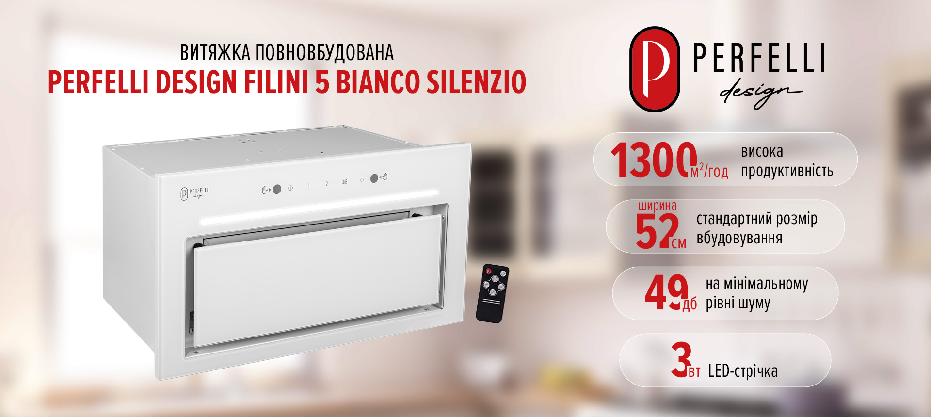 Вытяжка полновстраиваемая PERFELLI DESIGN FILINI 5 BIANCO SILENZIO ( УТ000004652 )