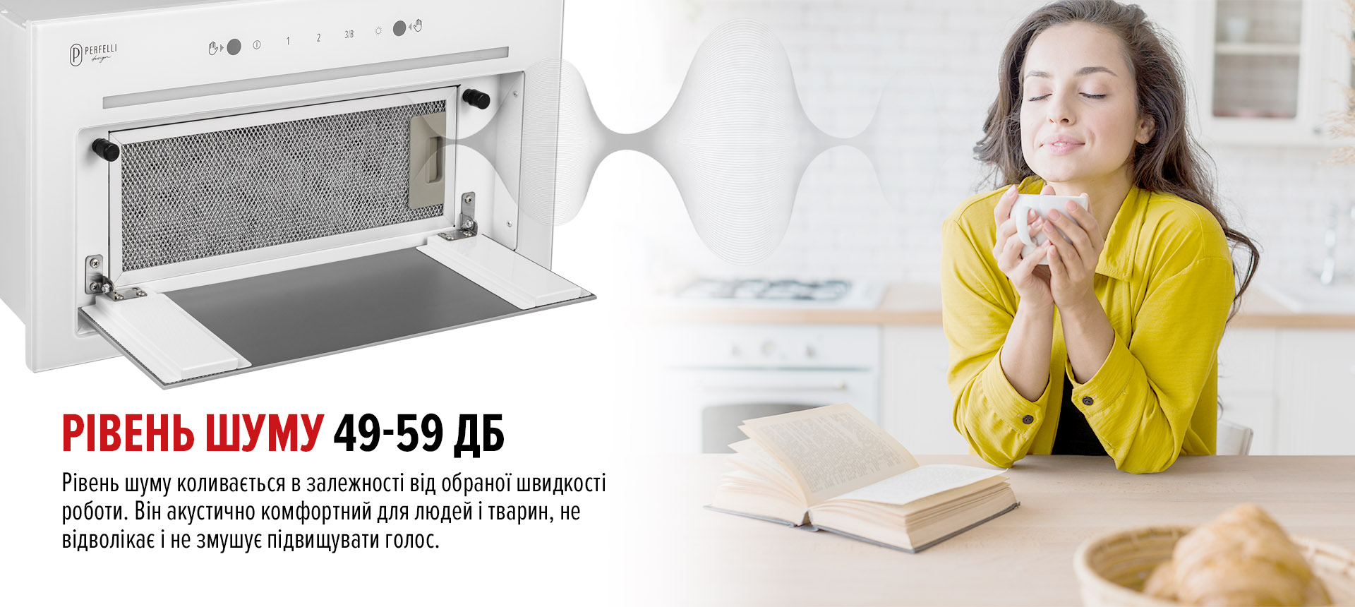 Тихая работа даже на высоких скоростях – это главное преимущество модели SILENZIO. Уровень шума удобен для кухонь любой площади, не мешает разговорам или отдыху.Уровень шума в 49-59 дБ – это почти как обычный разговор на близком расстоянии или работа офисного кондиционера. Такой шум не мешает общению, просмотру телевизора или отдыха. По сравнению с громкой бытовой техникой это звучание достаточно комфортно. Вы даже можете готовить ночью, не беспокоя спящих в соседней комнате. Для вытяжки – это хороший показатель тишины и качества.