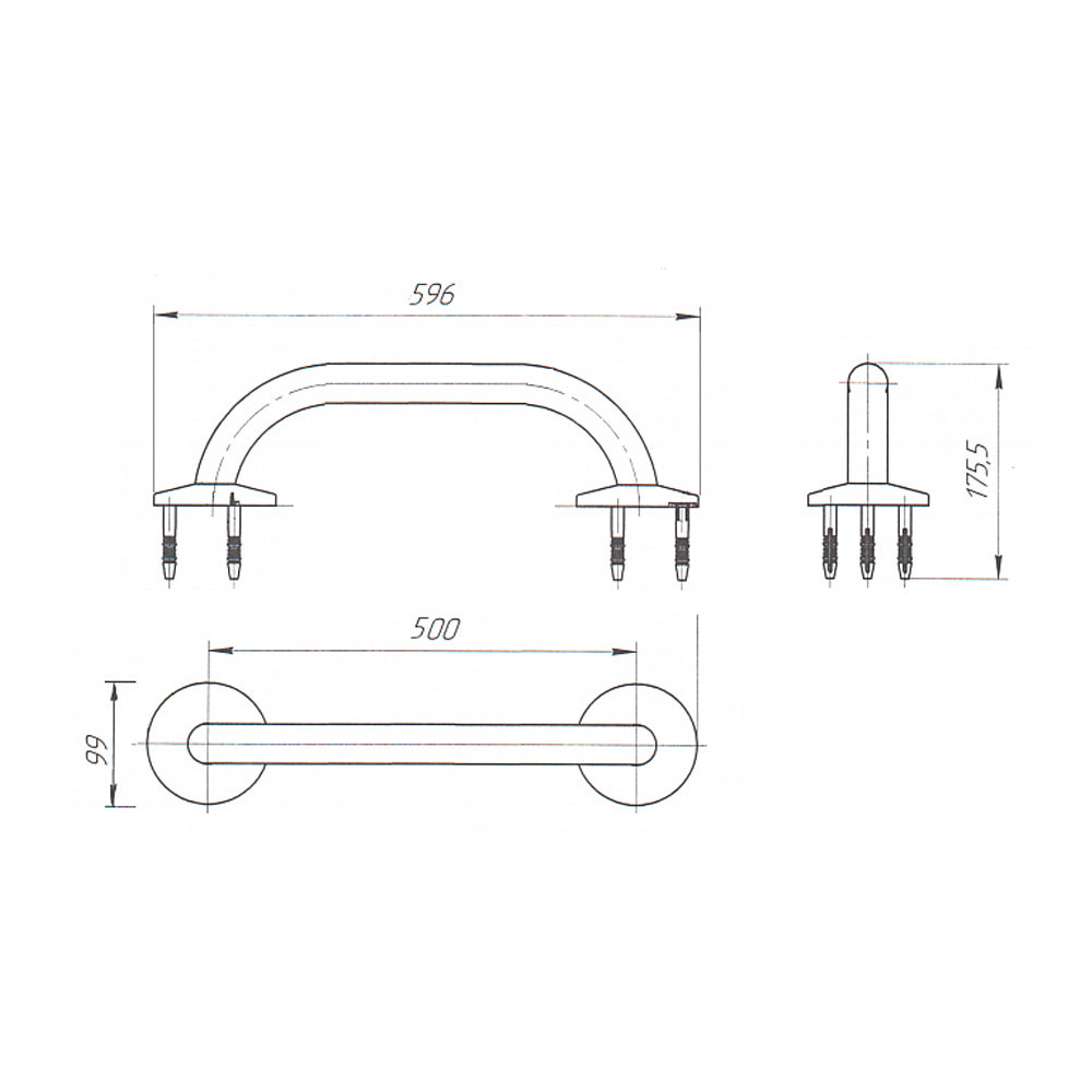 Поручень настінний -1 шт, кріплення (шуруп ф6 х 60 н/ж - 6 шт, дюбель10x60 - 6 шт) - 1 шт, паспорт - 1 шт.