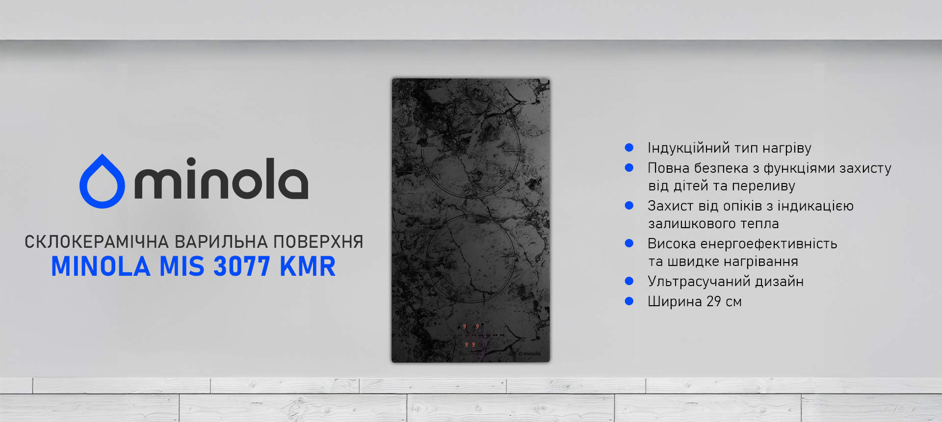 Minola MIS 3077 KMR — це індукційна варильна поверхня конструкції Domino, яка вирізняється сучасним функціональним дизайном і продуманими технічними рішеннями. Завдяки ширині (29 см) вона легко встановлюється навіть у найкомпактніші кухні або поєднується з іншими модулями. Її стильне мармурове покриття виглядає не лише естетично, а й практично в повсякденному користуванні. Сенсорне керування, інтуїтивна панель і корисні функції роблять цю поверхню ідеальним вибором для сучасної родини. Модель підтримує високий рівень безпеки завдяки функціям блокування і автоматичного вимкнення.