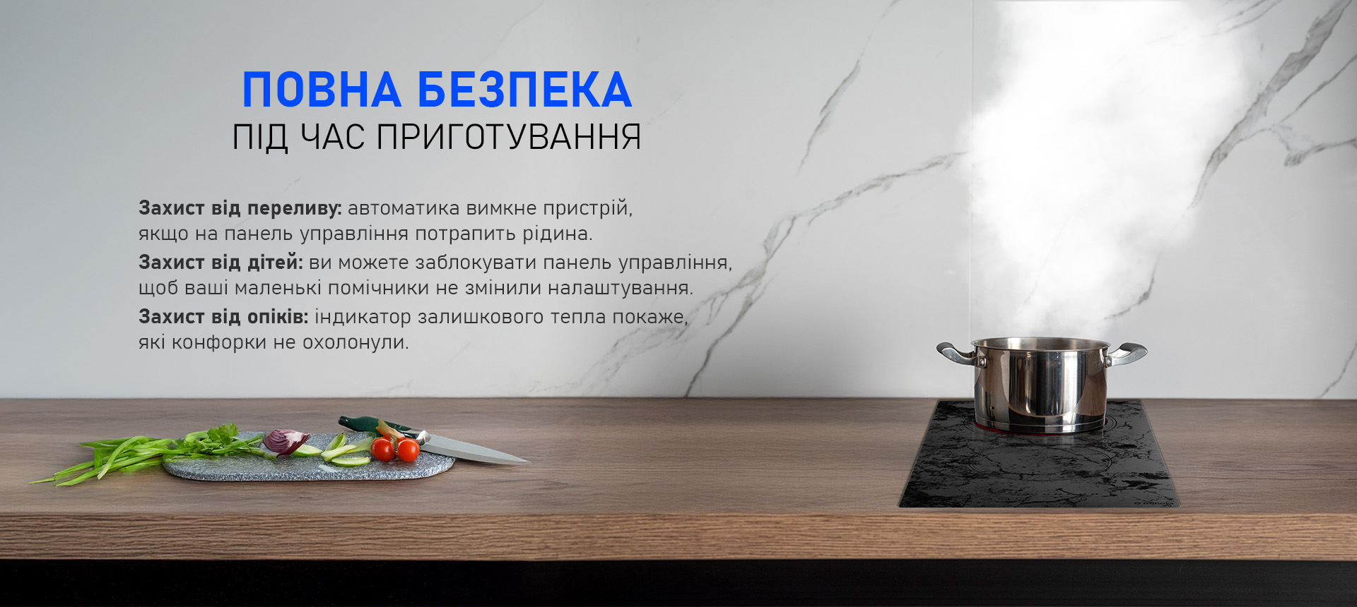 Ця модель підтримує базові функції, які спрощують повсякденне готування і роблять його безпечнішим: