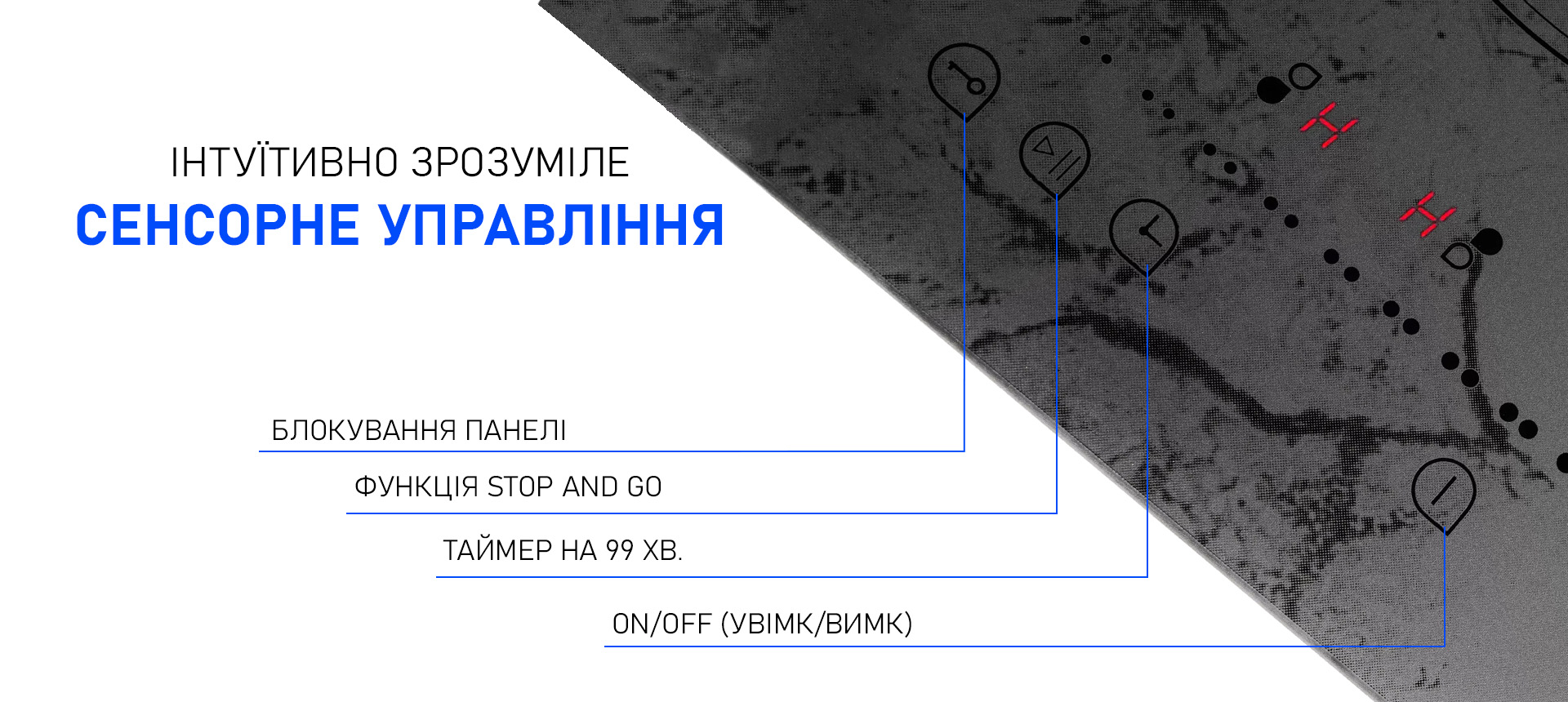 - Управління: Сенсорне слайдерне, фронтальне