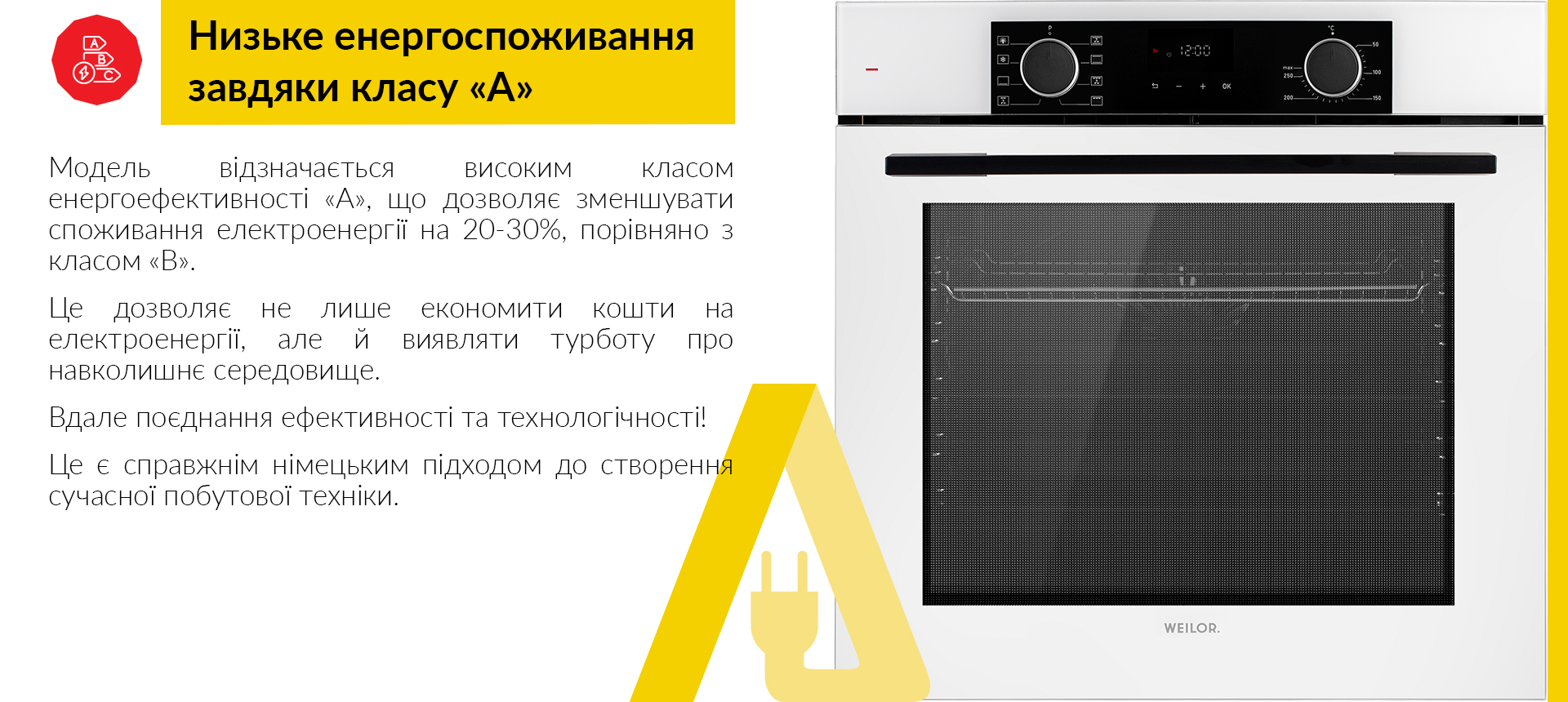 - Клас енергоспоживання «А», найекономічніший показник споживання енергії.