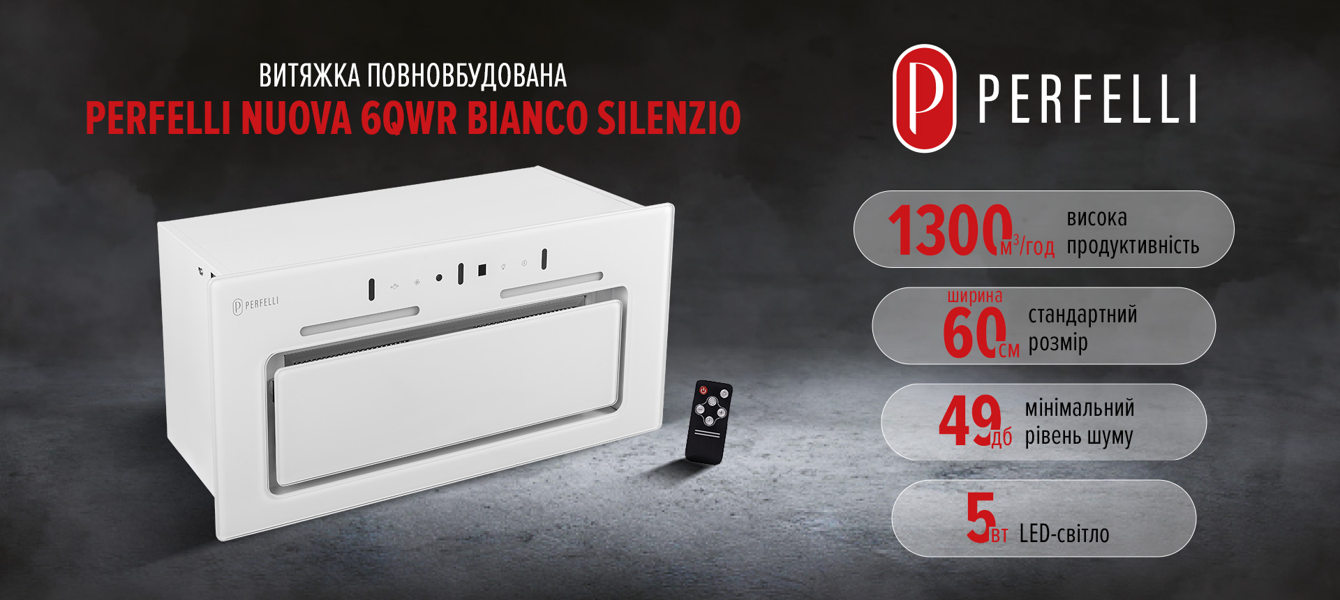 PERFELLI NUOVA 6QWR BIANCO SILENZIO — елегантна та функціональна вбудована витяжка для сучасної кухні!