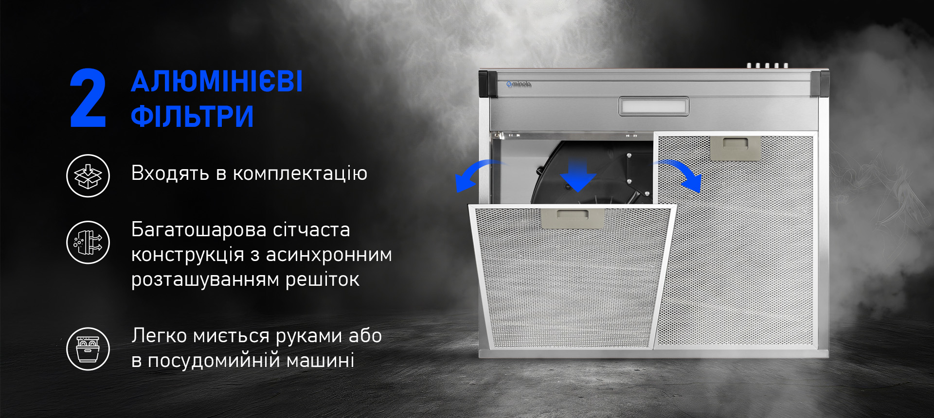 Для роботи у режимі рециркуляції встановлюють вугільний фільтр (докуповується окремо). Він очищає простір від запахів та диму, повертаючи у кухню свіже та чисте повітря.