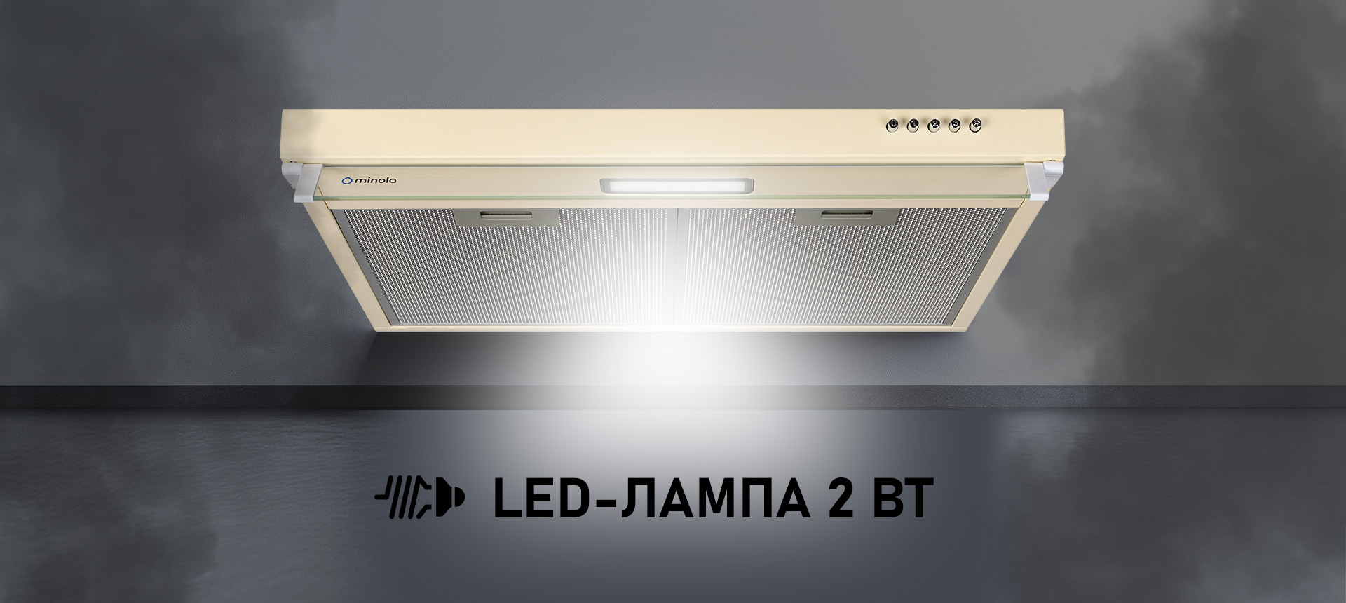 Minola HPL 633 IV в кольорі "ivory" (кремовий) – вишукане рішення для класичних, скандинавських і так званих бежевих кухонь. Завдяки теплому відтінку витяжка виглядає дорого і стильно. Потужність двох моторів, три режими роботи, режими відведення та рециркуляції, LED-підсвітка і високоякісний алюмінієвий фільтр гарантують комфорт і чистоту повітря у вашому домі.
