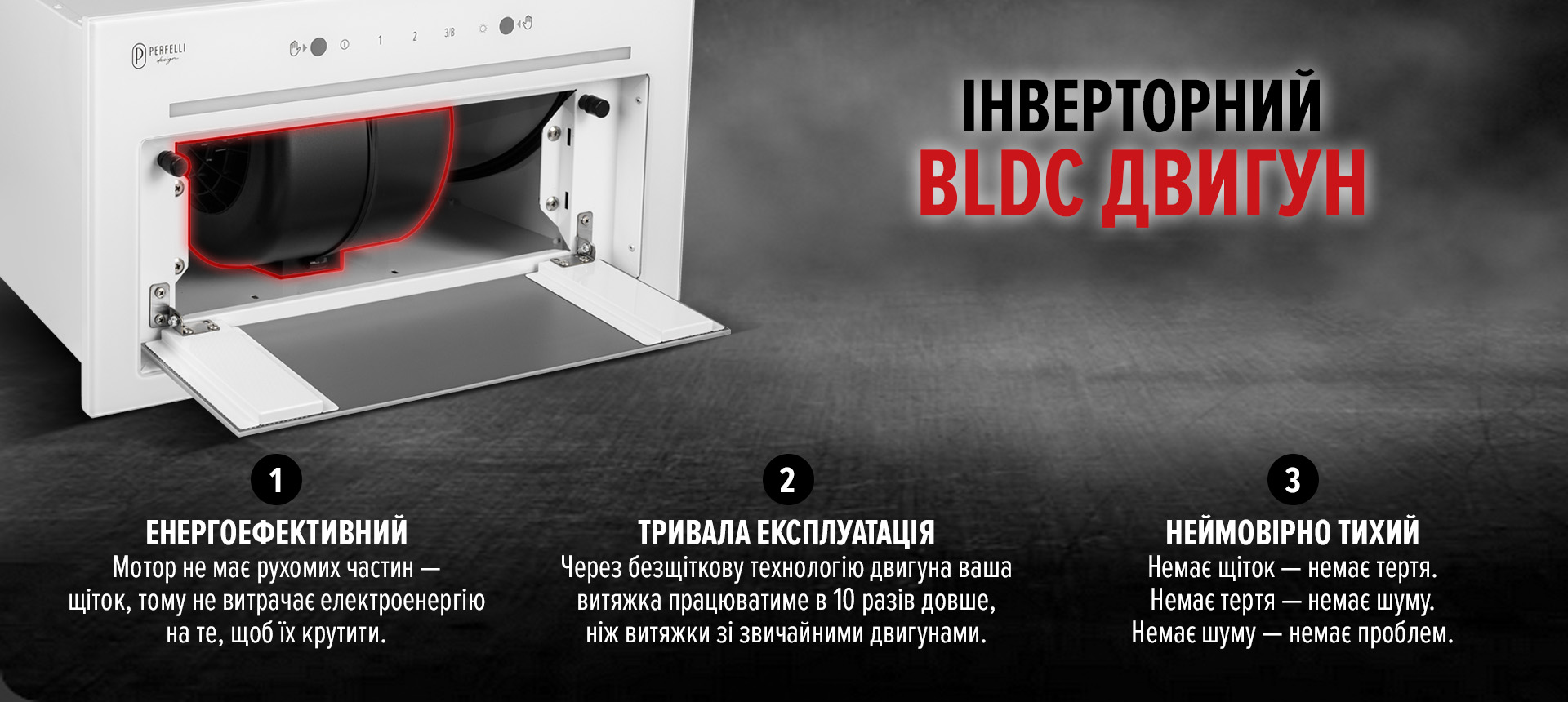 - Бесщітковий BLDC-мотор — тихий, довговічний, потужний.