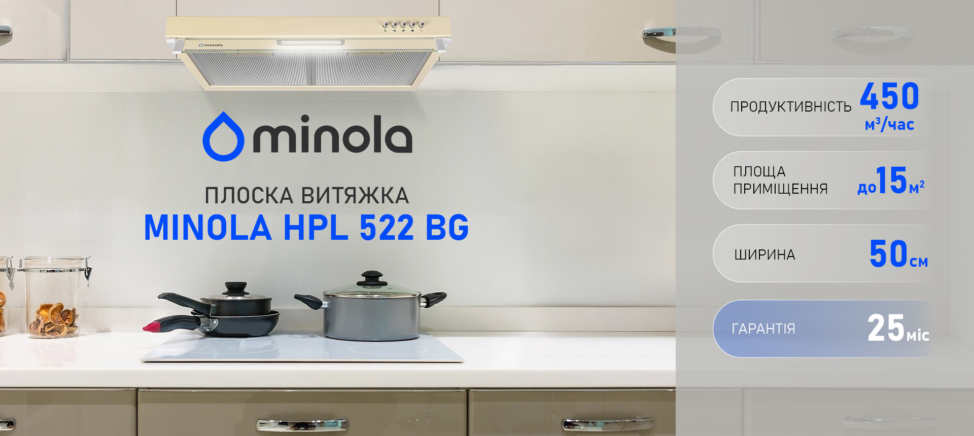 Плоска витяжка Minola HPL 522 BG — стильний акцент для бежевих інтер’єрів