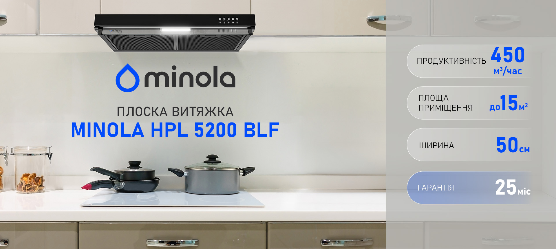 Витяжка плоска Minola HPL 5200 BLF — витяжка, яка поєднує стиль і тишу