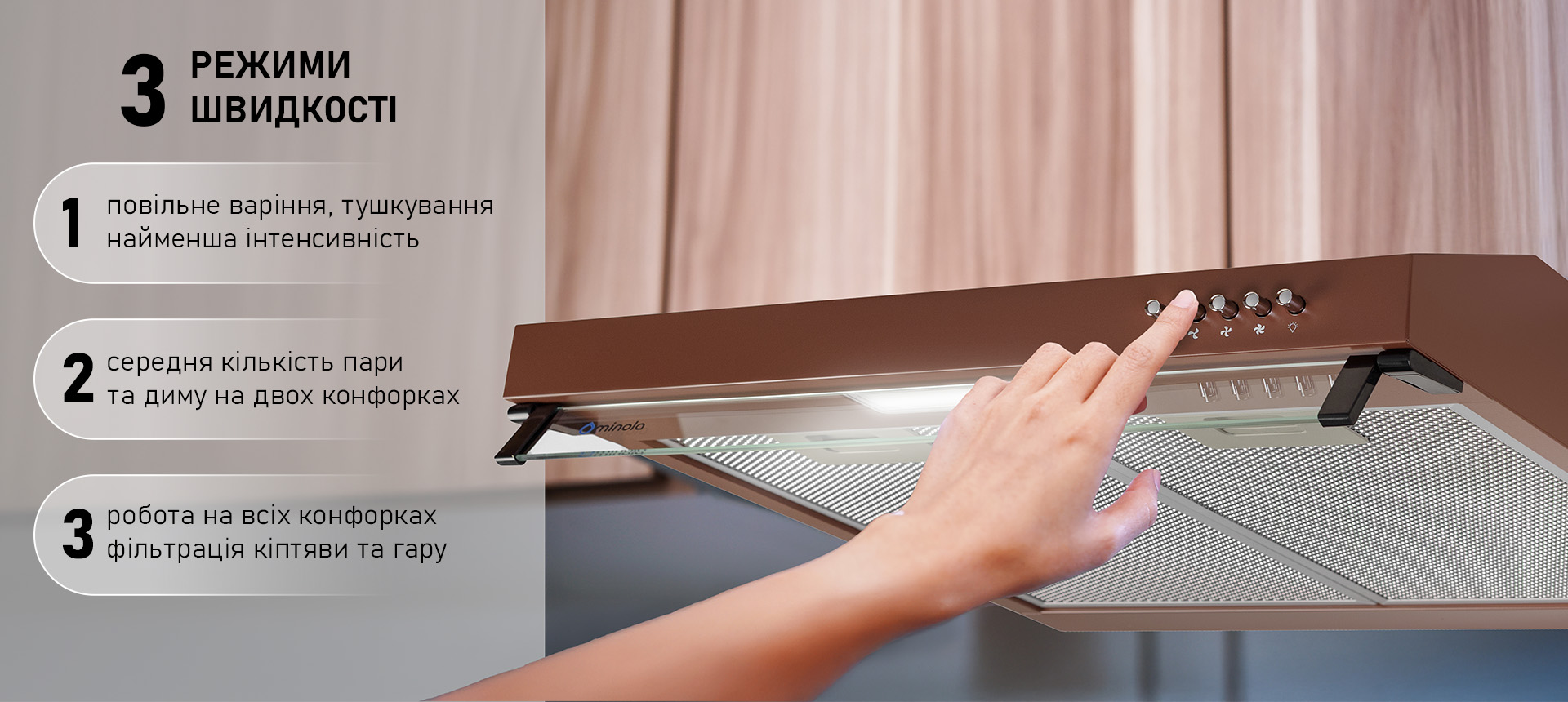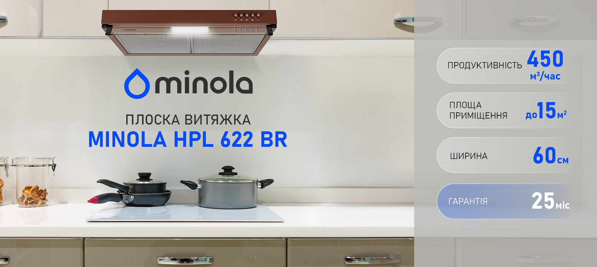 Обирайте Minola HPL 622 BR — витяжку, що прикрасить вашу кухню і забезпечить чисте повітря!